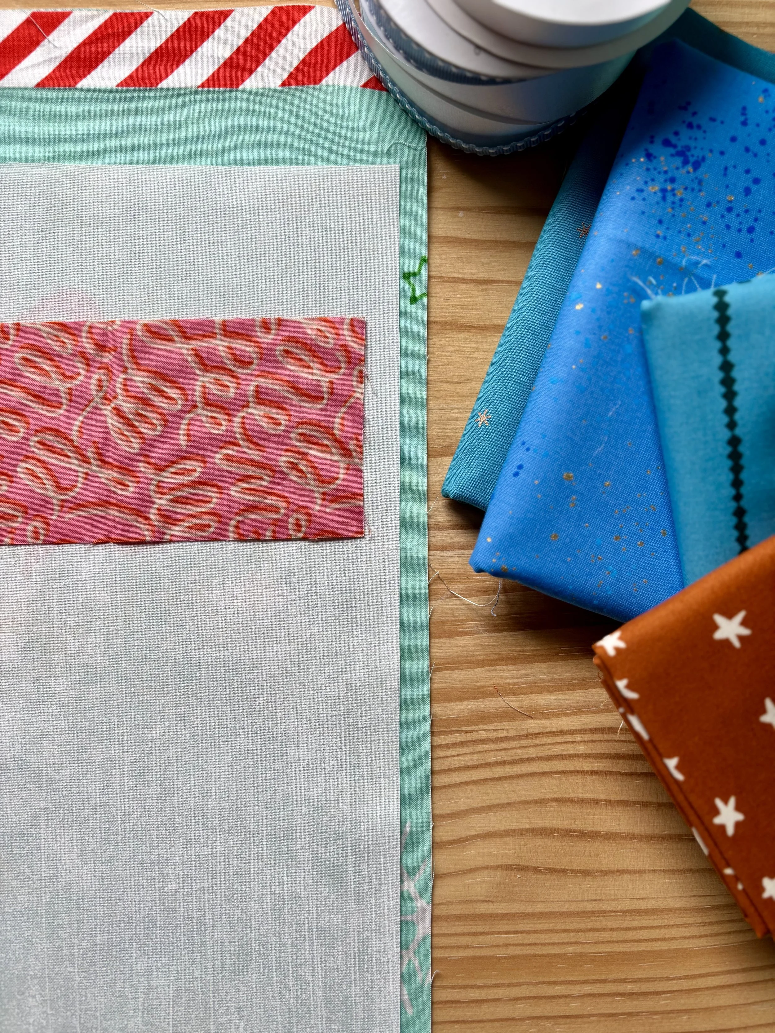 Ruby Star Society fabric from various collections and elements from the Peppermint Please Panel by Sarah Watts were used for this tutorial