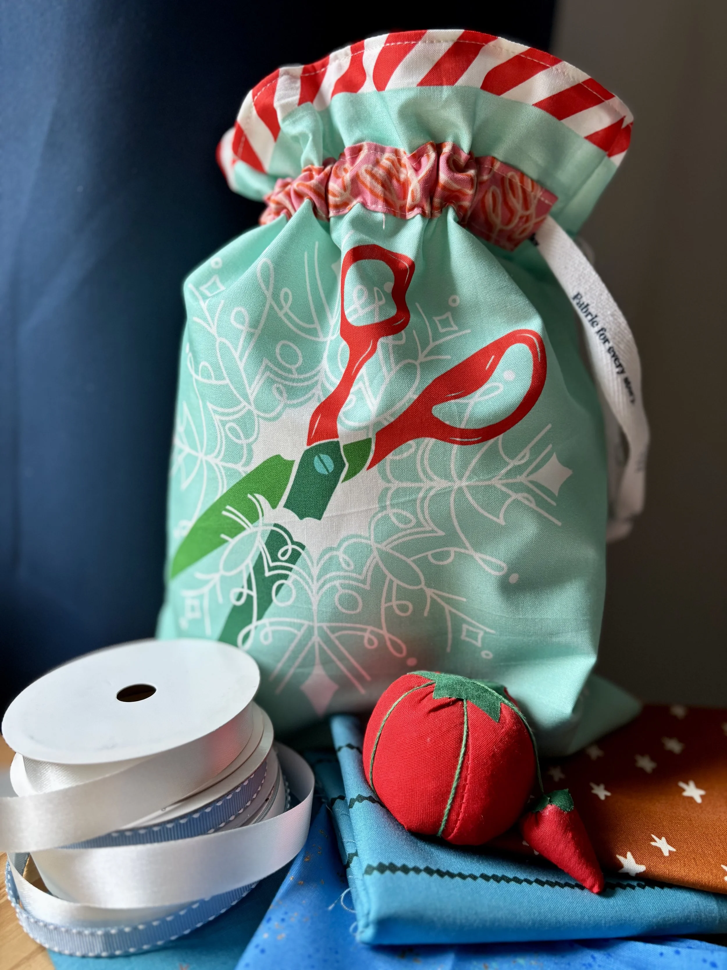 Strip of quilting cotton for the drawstring casing (roughly 2-4 inches by the width of the gift bag)